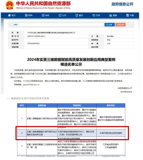 星際公司主持完成了天津市三維數(shù)字城市建設(shè),正在開展天津市實景三維建設(shè)與應(yīng)用工作。截至目前,實景三維天津數(shù)據(jù)已覆蓋天津市中心城區(qū)及周邊重點區(qū)域600多平方公里高精細三維數(shù)字模型、天津全市域城鎮(zhèn)開發(fā)邊界范圍2924平方公里城市三維模型LOD1.3成果。其中,星際公司申報的《實景三維數(shù)據(jù)賦能天津市城市設(shè)計編制實施創(chuàng)新實踐》,代表天津?qū)嵺`,成功入選了2024年自然資源部、國家數(shù)據(jù)局創(chuàng)新應(yīng)用典型案例,并被自然資源部專題推介研閱。